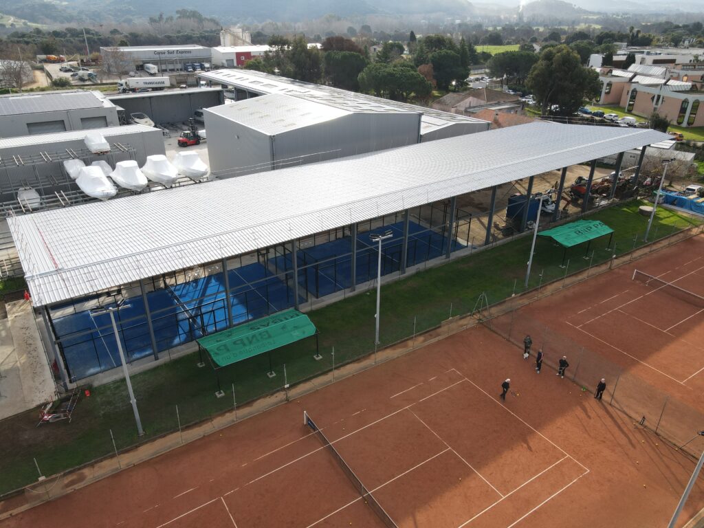 Corsica Sole is supporting ASPTT Baleone in the modernization of its infrastructure through the design, financing, and construction of a photovoltaic complex integrating a solar hangar and parking lot solar canopies. This project illustrates a responsible development approach in which green electricity generation directly supports the expansion of local sports facilities.