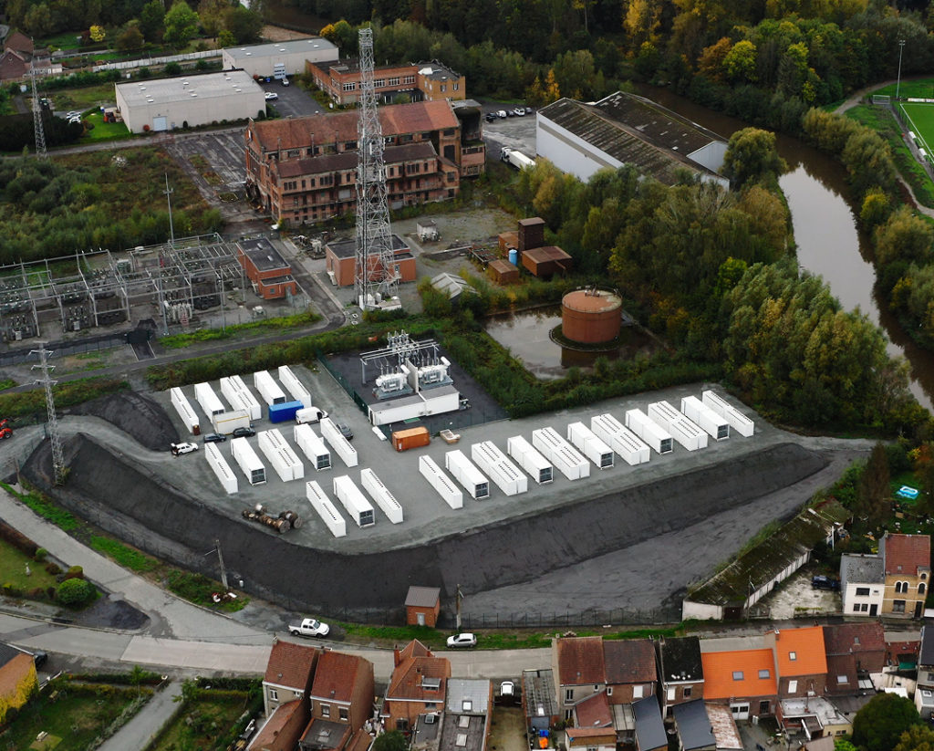 Dotée d’une capacité de 100 MWh et de 40 unités de batteries lithium-ion, la centrale de stockage stabilise le réseau électrique belge en ajustant en temps réel la fréquence du transport d’électricité.