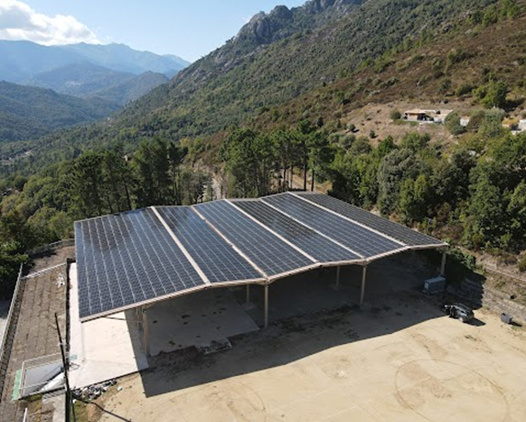 La toiture solaire installée sur un hangar communal de Haute Corse, est une initiative portée par la mairie du village de Venaco.
