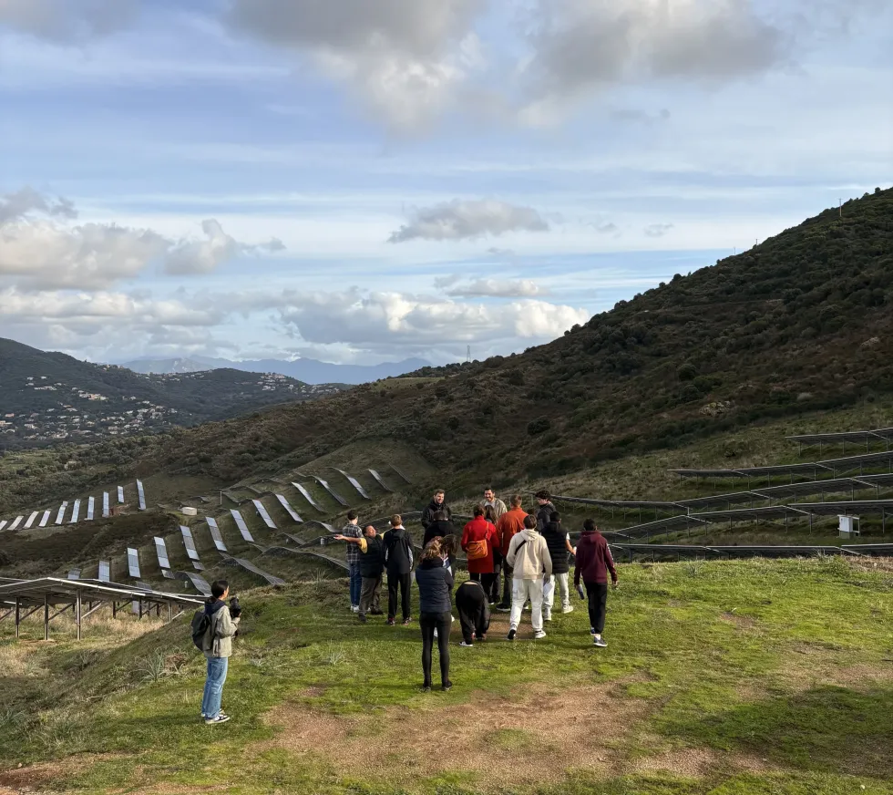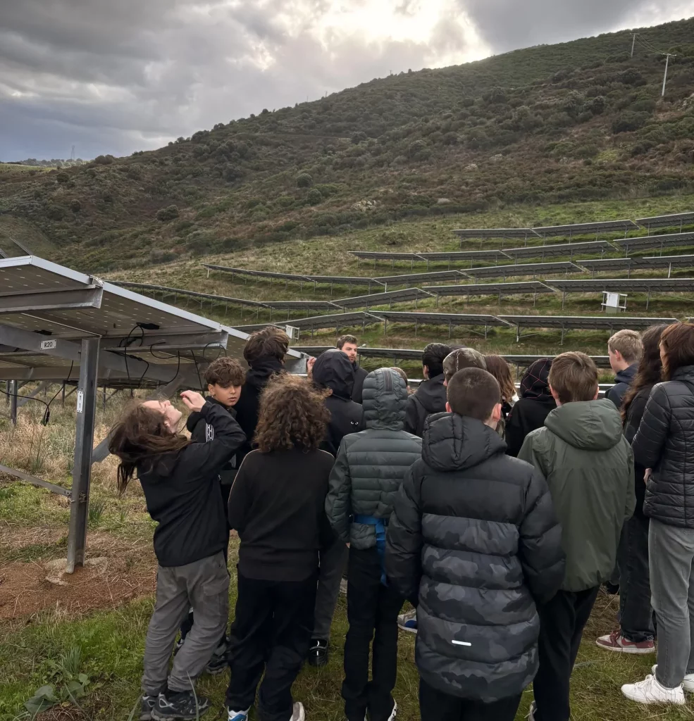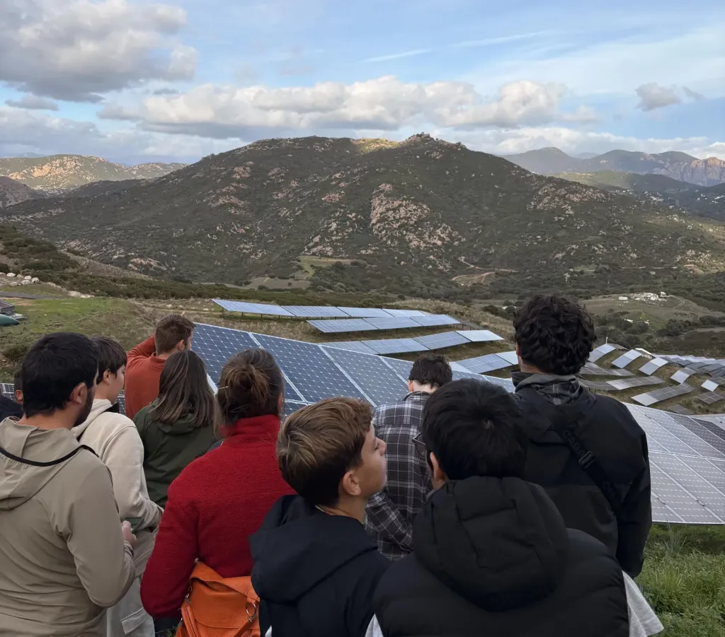 Accueillis par les équipes de Corsica Sole, les élèves ont pu découvrir le fonctionnement d’une centrale solaire, comprendre son rôle dans la production locale d’énergie renouvelable et appréhender les enjeux énergétiques propres à la Corse.